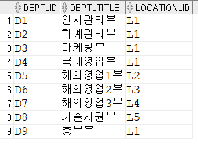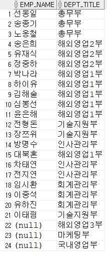-- outer join : dept_code쪽은 조건을 충족시키지 않아도 일단 출력