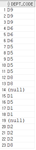 부서코드 별로 묶이면 다른 column은 어떨게 될까?