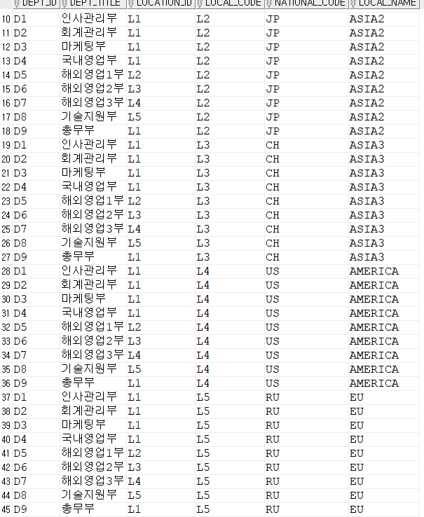 select * from DEPARTMENT, location;