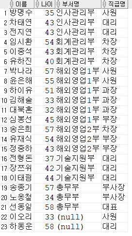 -- sub query (중요한 내용이지만 23일 시험 내용에서는 빠짐)
