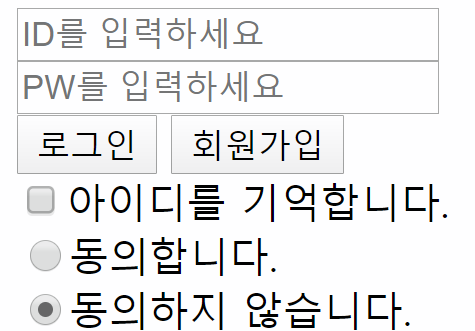 <input type = "radio" name=agreement>동의합니다.<br>