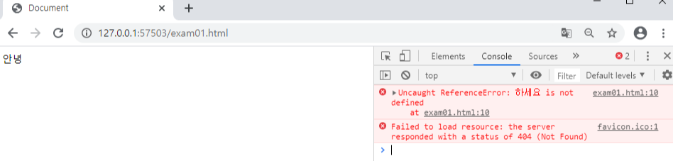 스크립트 영역 안에서 html문법을 쓰면 에러