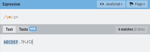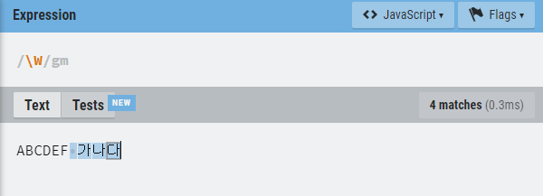 대문자 W는 알파벳과 숫자가 아닌 것을 찾는것