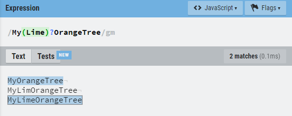 기본동작 - 물음표 앞의 한글자가 있거나 없는 상황 모두 매칭