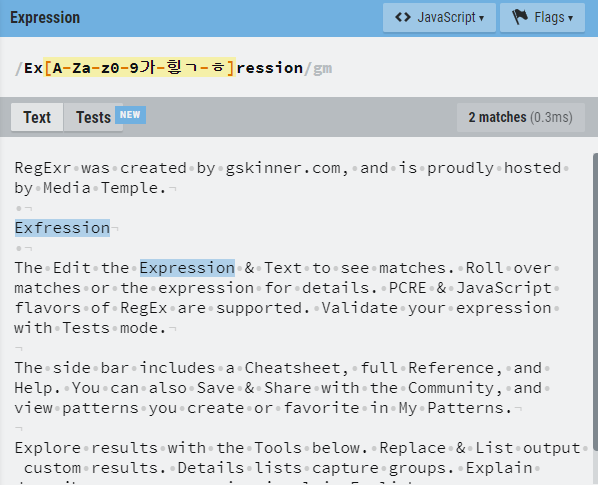 연습 사이트 : https://regexr.com/