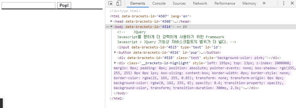 Javascript > JQuery 기능상 자바스크립트의 범위가 더 넓다. -->