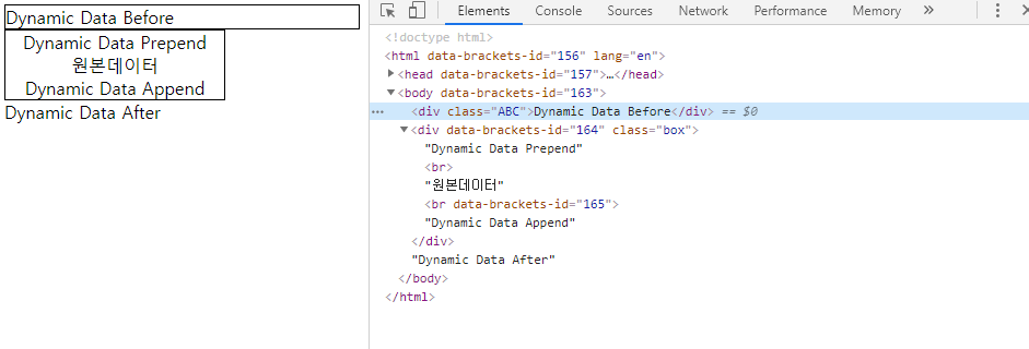 $(".box").prepend("Dynamic Data Prepend<br>");