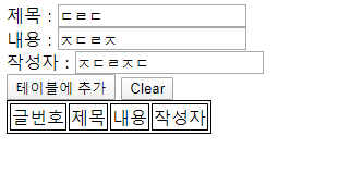 입력한 데이터가 추가되는 테이블 만들기