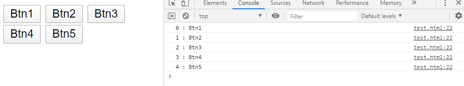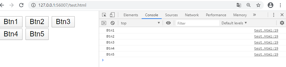 <!-- 버튼 5개의 값들을 콘솔에 출력하시오-->