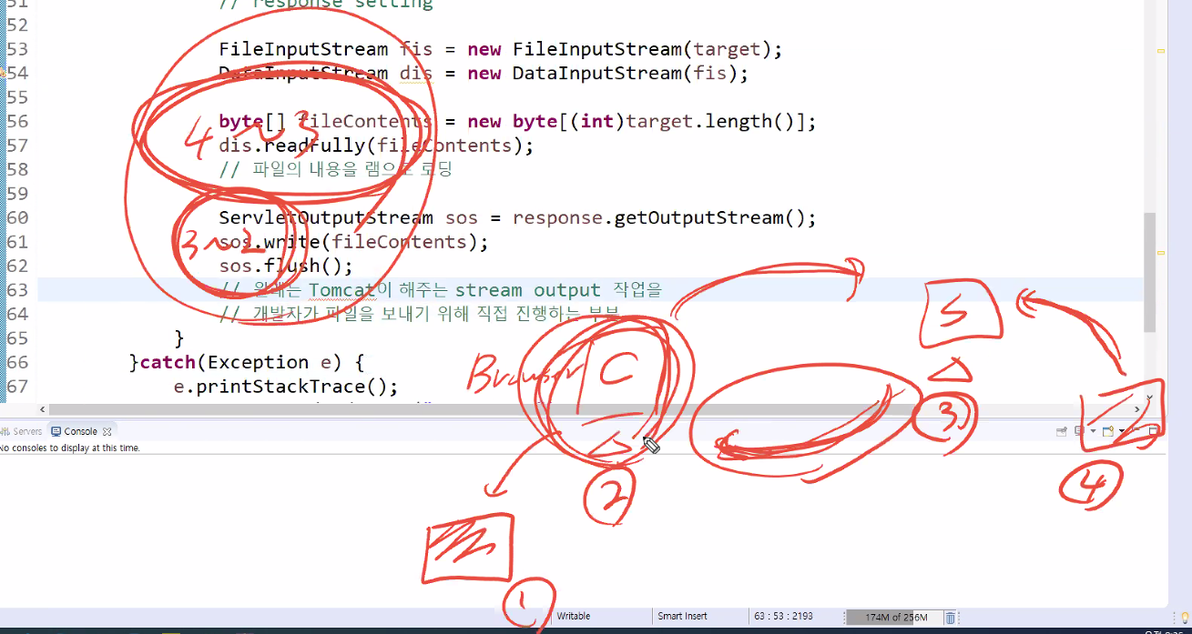 클라이언트가 받아서 하드에 저장하는 작업은 브라우저가 알아서 함 (별도로 코드 짜줄 필요 없음)