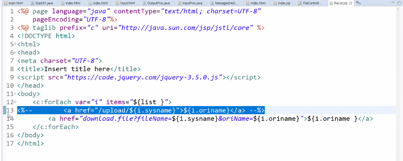 코드를 거쳐서 다운로드 반도록 해야 권한이나 조건을 설정 할 수 있다.