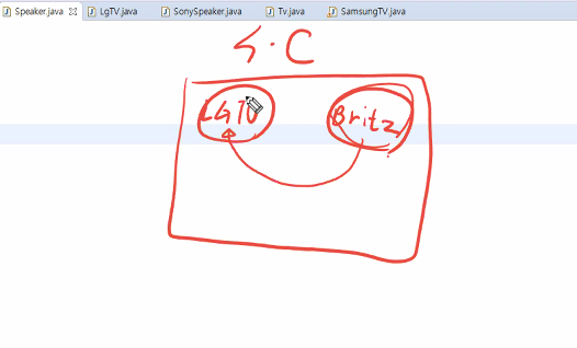 엘지티비가 가진 스피커는 1개 , 스피커를 상속받는 클래스는 2개(브릿츠 소니)