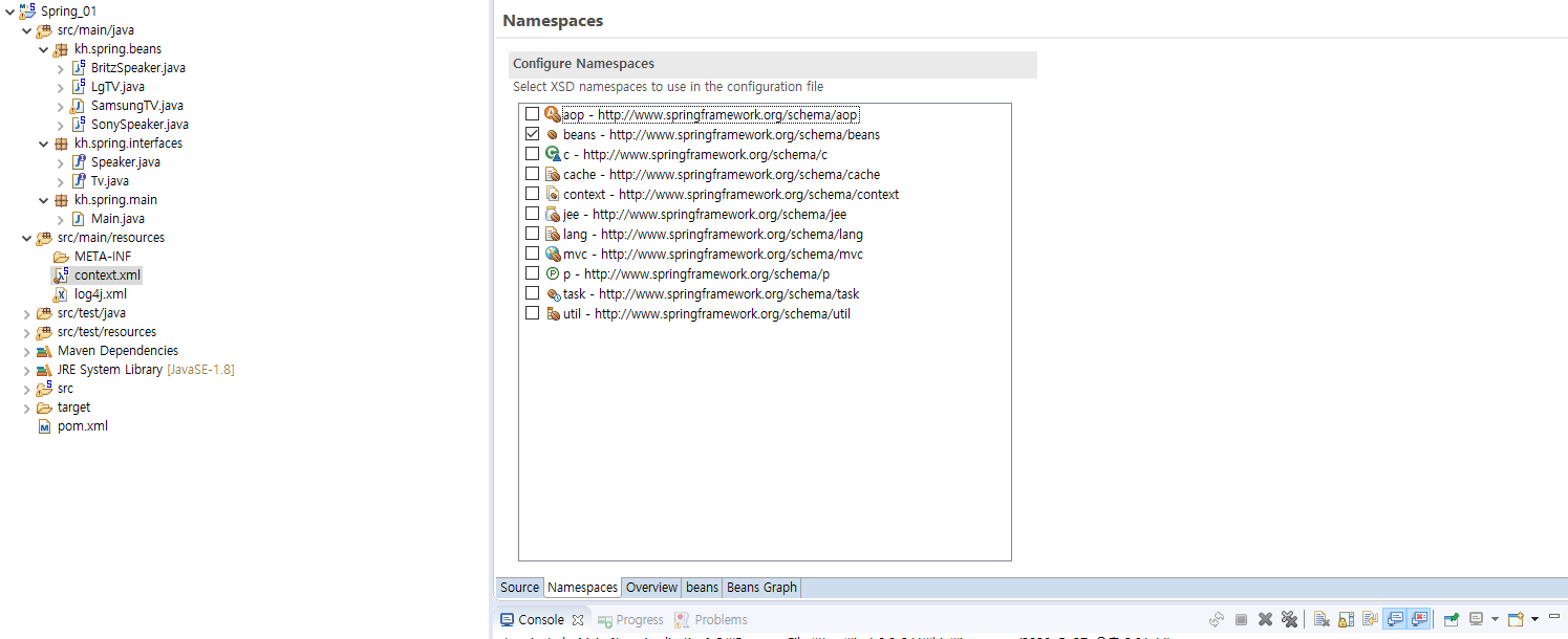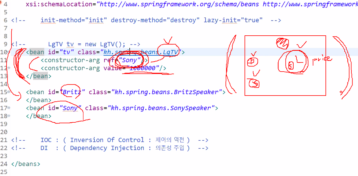 <bean id="tv" class="kh.spring.beans.LgTV">