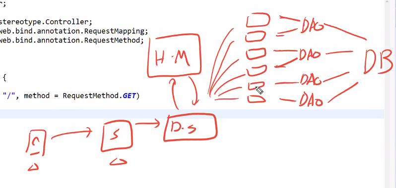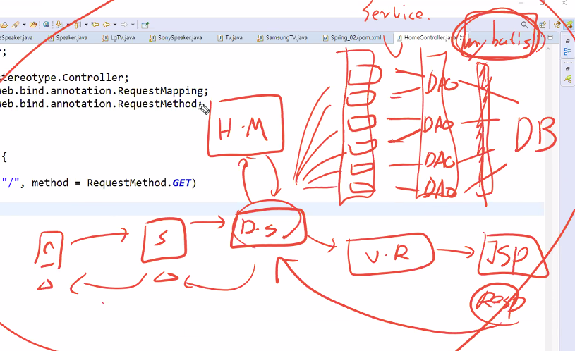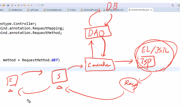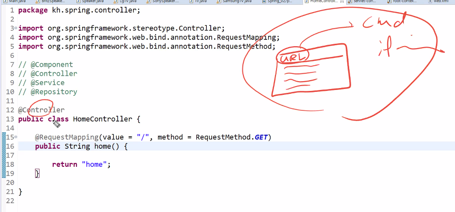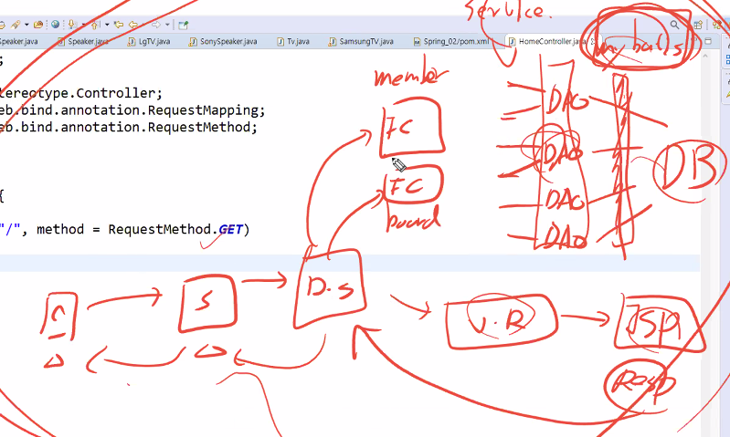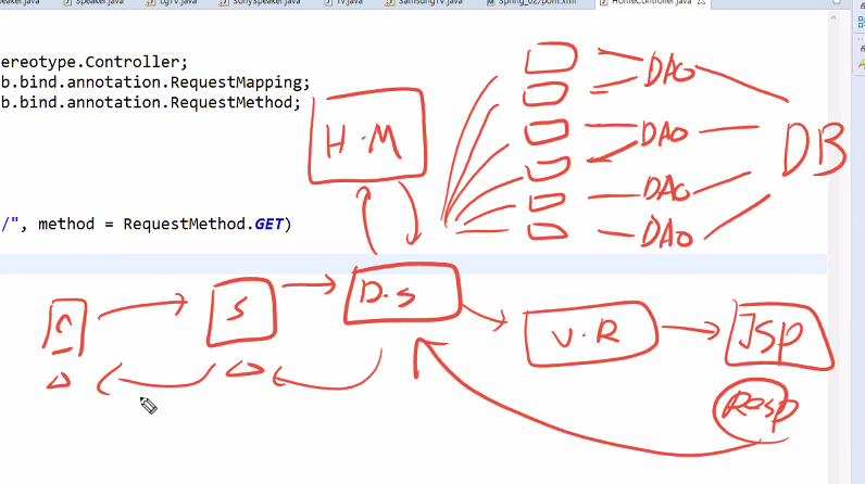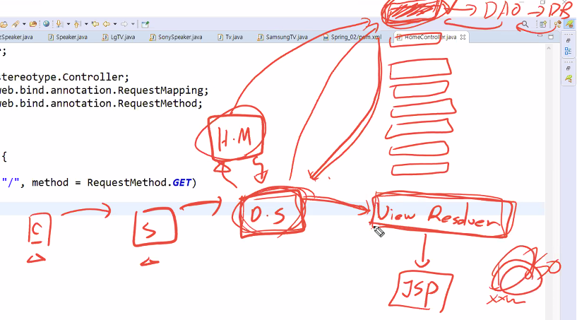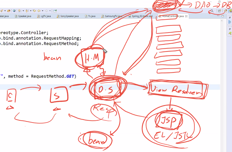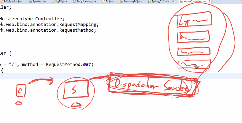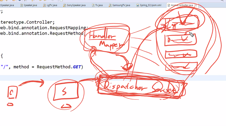 Dispatcher servlet가 핸들러맵퍼한테 어디로 보낼지 물어봄 -> 인스턴스를 알려줌 -> 디스패처가 해당 컨트롤러에 요청