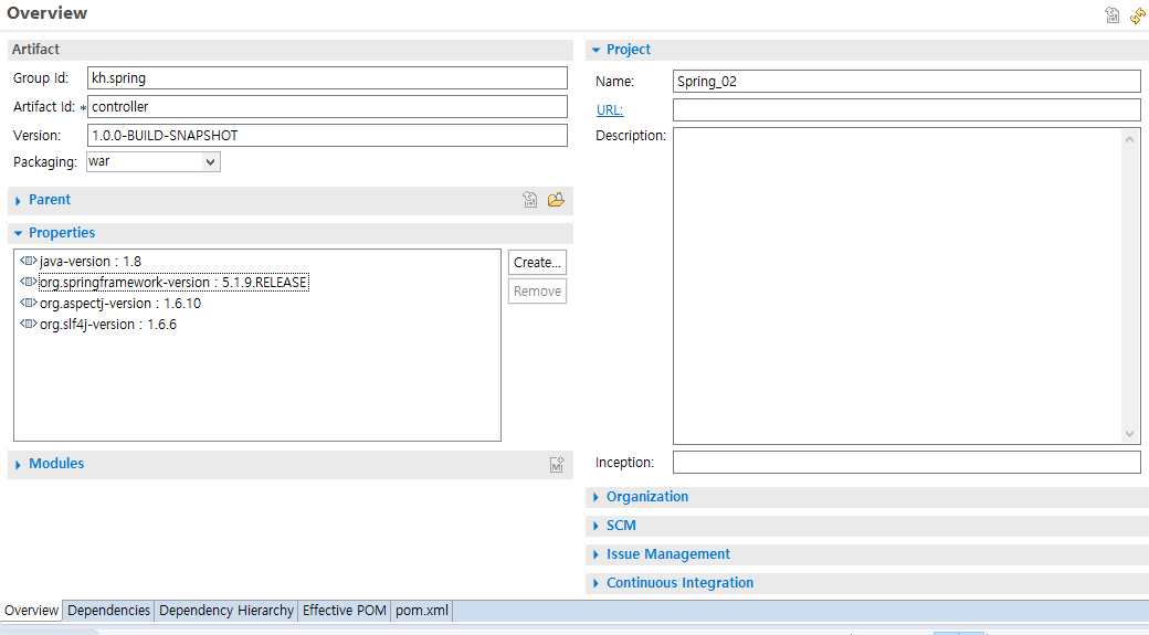 1. 다른 XML(root-context.xml)을 가동해라 > 비어있음