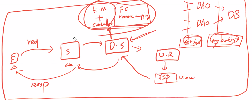 요청을 처리해줄 대상을 검색해야 함 -> 핸들러맵퍼 라는 인스턴스에 요청
