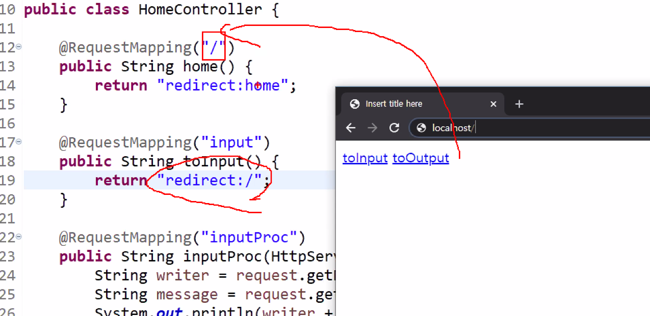 리다이렉트는 클라이언트 url을 바꾸는 명령 : 클라이언트의 주소창이 바뀐다. request 초기화