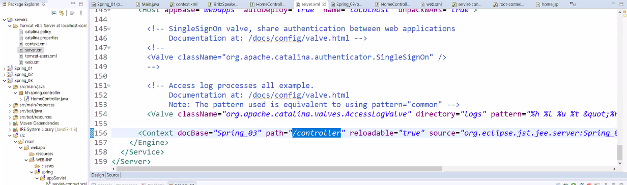톰캣 설정파일을 변경했을 때는 서버 재시동 해야 함