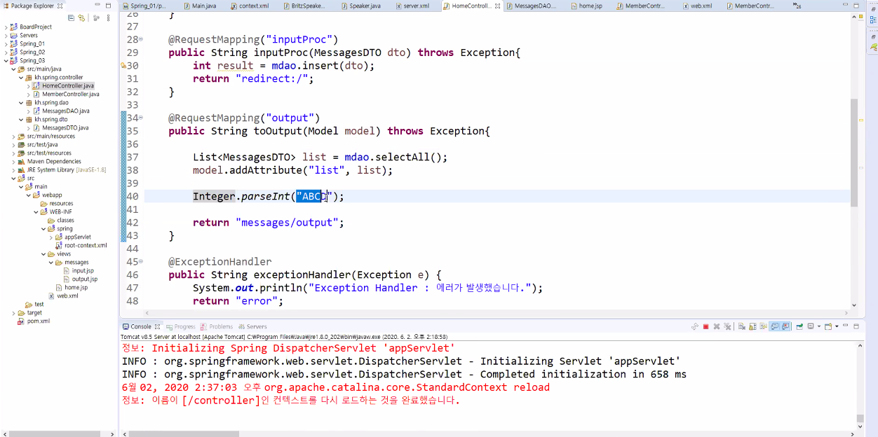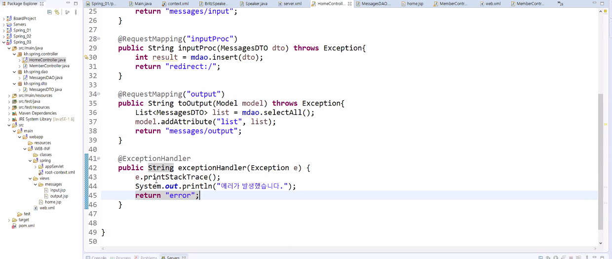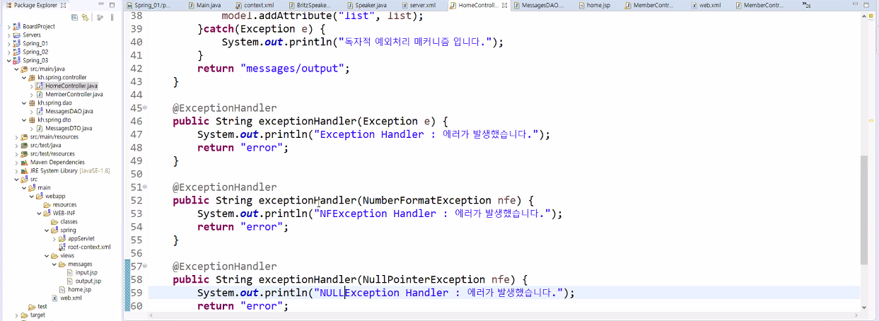 Spring의 @ 방식으로 예외처리 하기