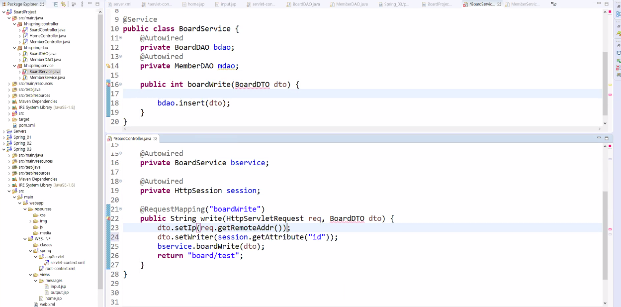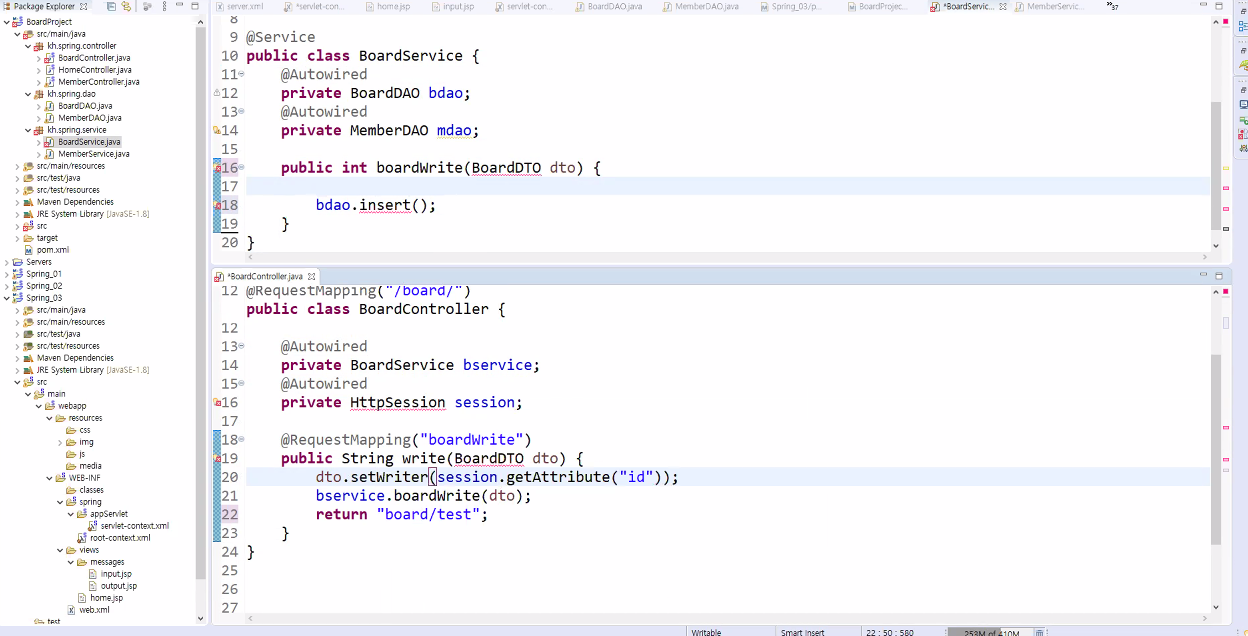 form 으로 받는값 뿐아니라 session에서 꺼내는 경우 (글쓴이 아이디)