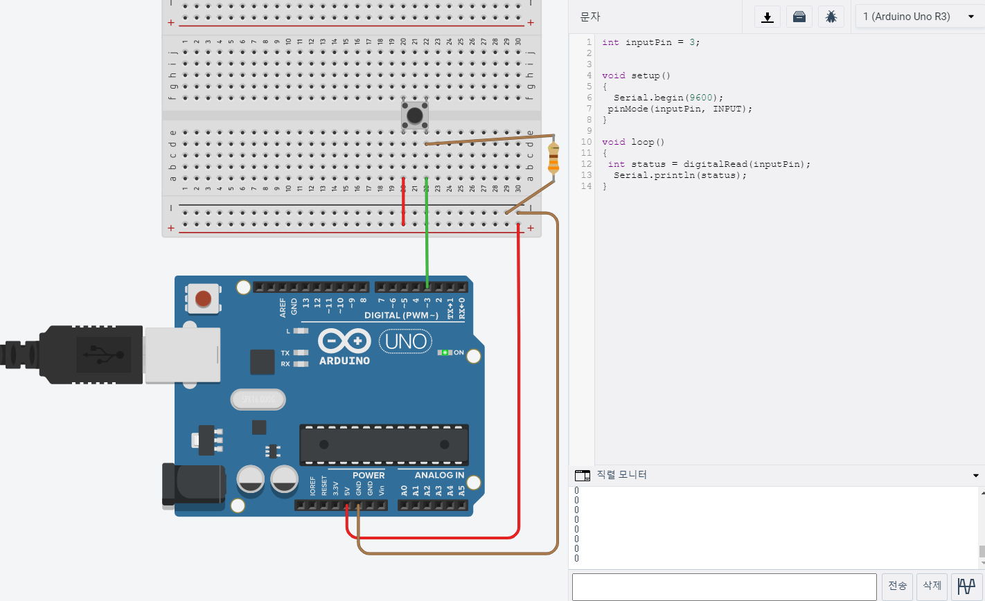 아두이노에서 이러한 그라운드 연결을 '풀업 저항' 또는 '풀다운 저항' 이라고 한다.