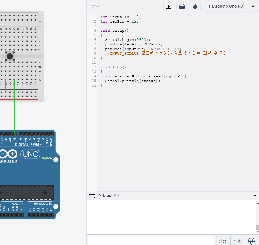 pinMode(inputPin, INPUT_PULLUP); // 플로팅을 피할 수 있음
