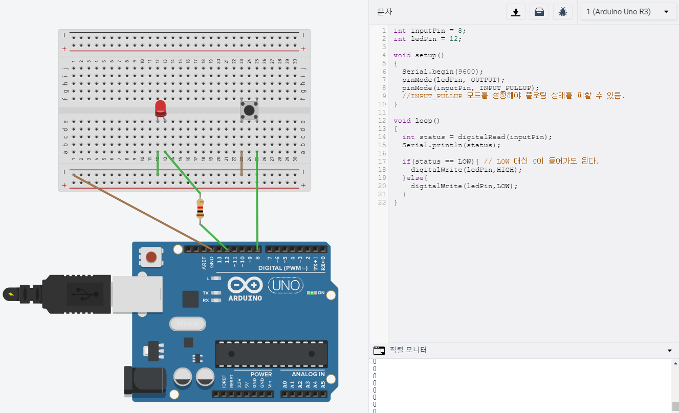 if(status == LOW){ // LOW 대신 0이 들어가도 된다.