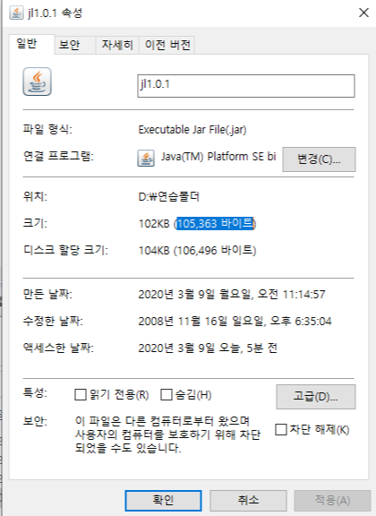 File file = new File("d:/연습폴더/jl1.0.1.jar");