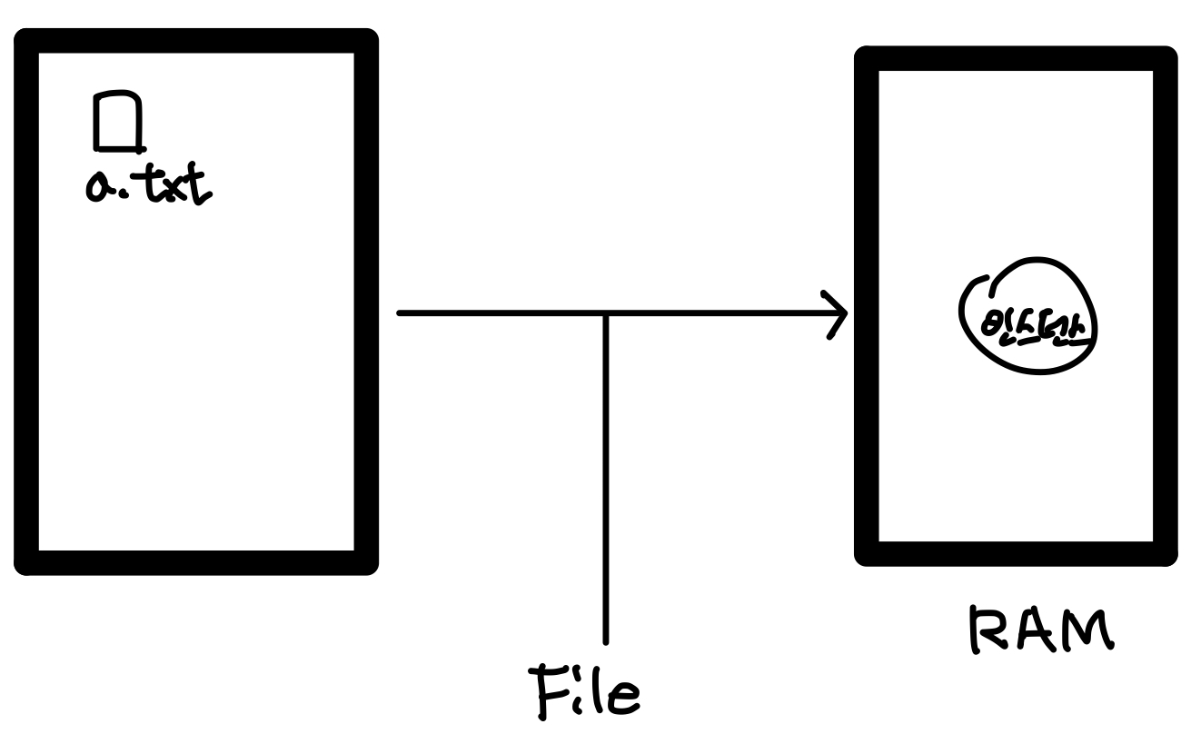 //파일 스트림 만들기 (하드디스크 내용을 램으로 불러오기, 기준점은 램)