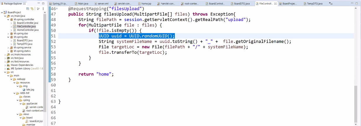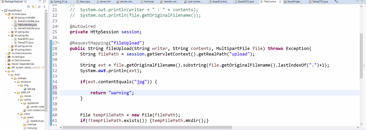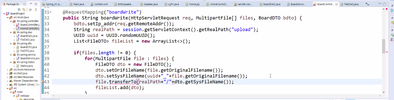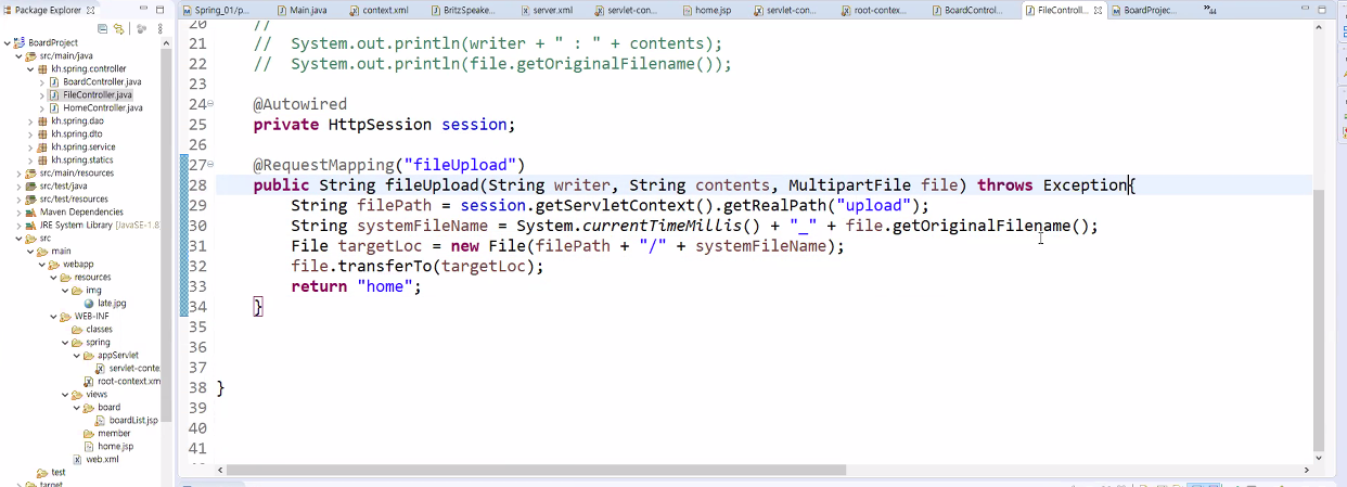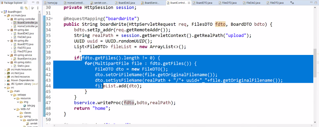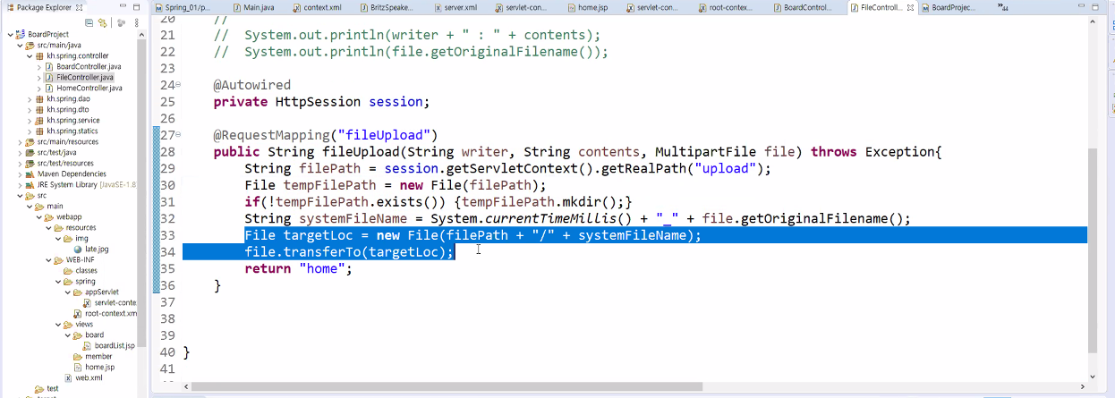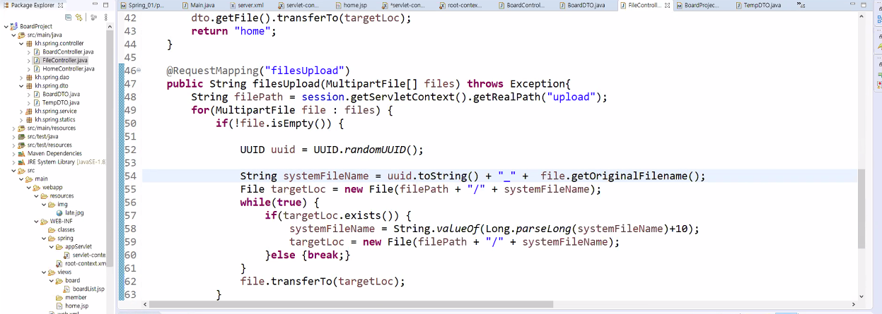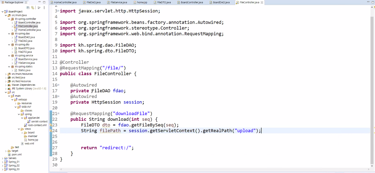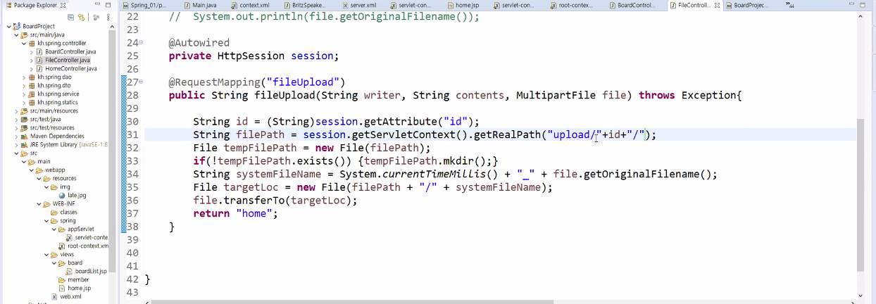 String filePath = session.getServletContext().getRealPath("upload/"+fdto.getUploader_id());