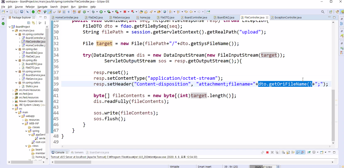 FileDTO fdto = bservice.getFileBySeq(seq);