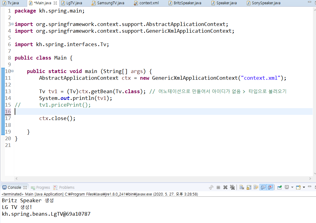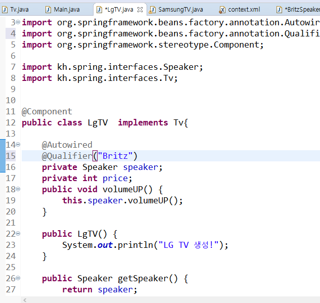 <bean id="tv" class="kh.spring.beans.LgTV">
