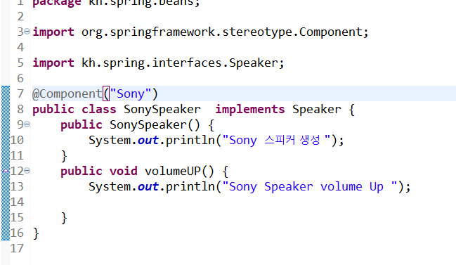 <bean id="Sony" class="kh.spring.beans.SonySpeaker">