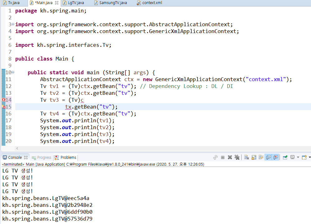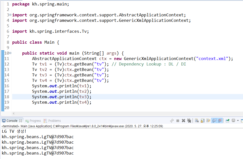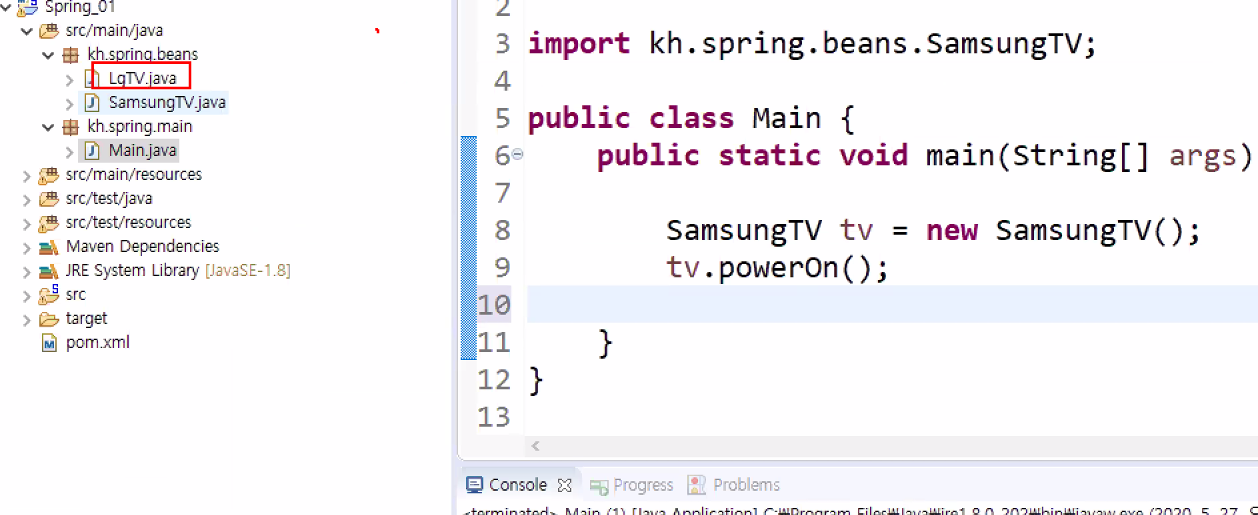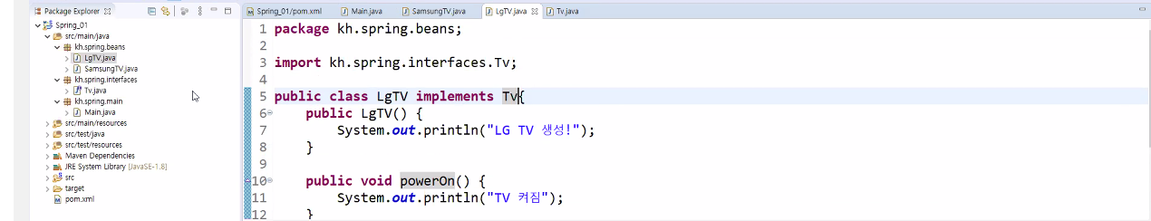 <bean id="tv" class="kh.spring.beans.LgTV">