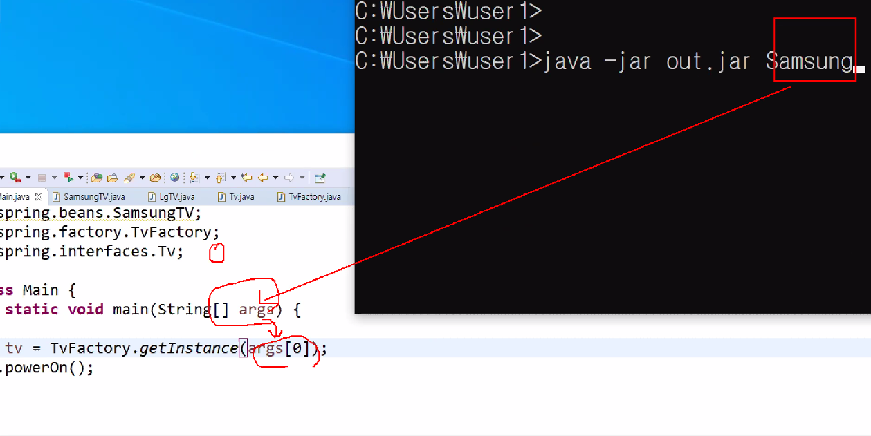 "Samsung"이 아니라 args[0]를 넣으면