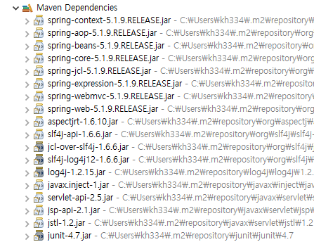 pom.xml 메이븐 설정 코드 -> Maven Dependencies 에 영향